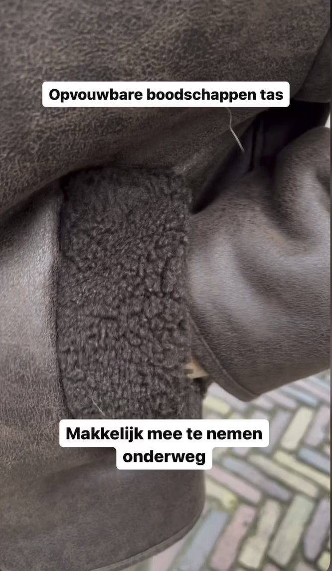 - Voorvakje met rits waar de tas weer in kan worden terugvouwen als je 'm weer wil opbergen en tevens een handig opbergvakje als de tas opengevouwen is.